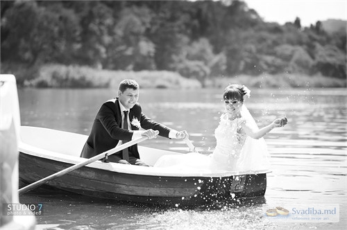 жених прогулка озеро свадьба невеста молодожены лодка